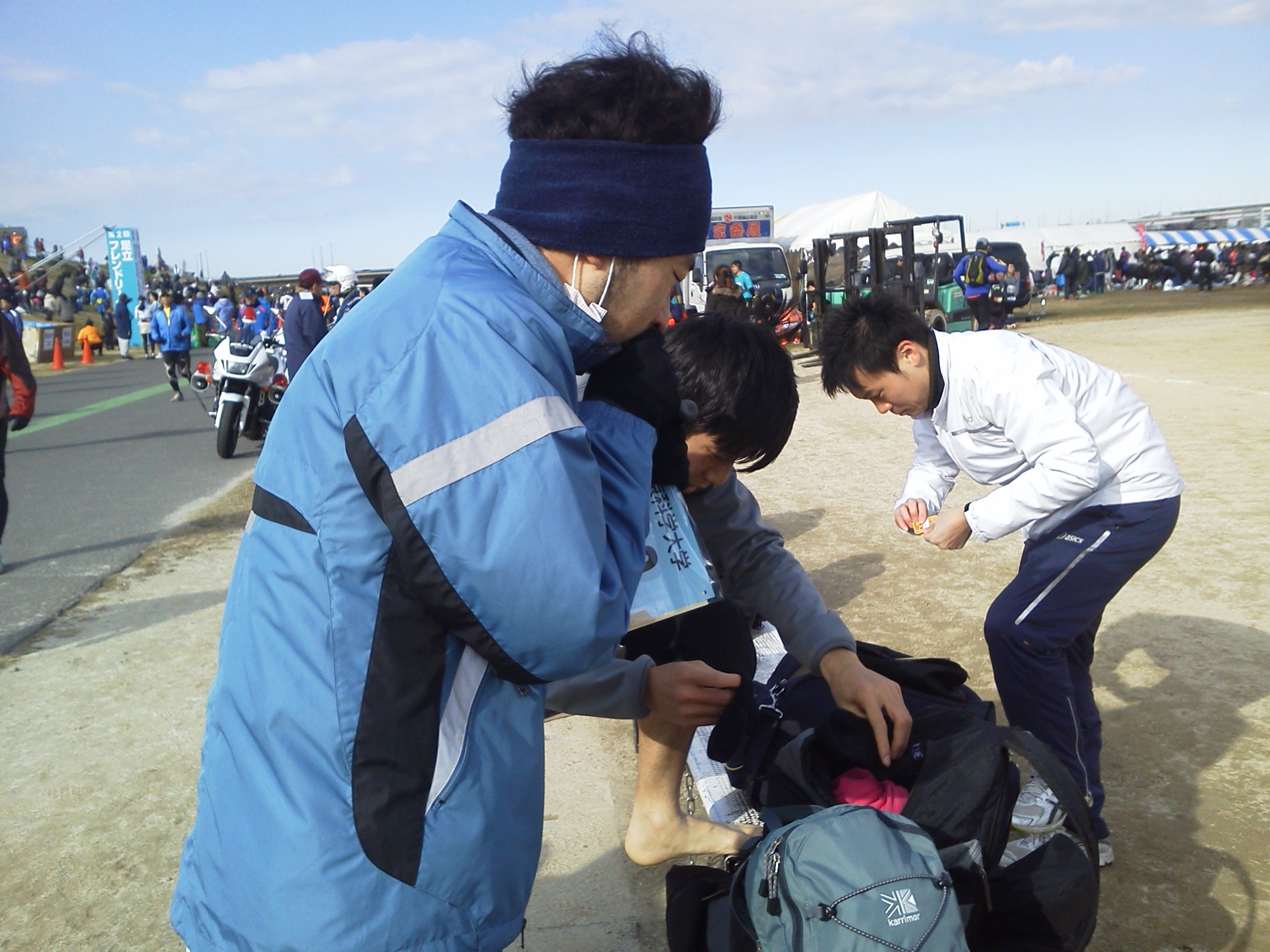 スタート前にランナー達は震え上がっていました。もちろん応援する方も寒い寒い!