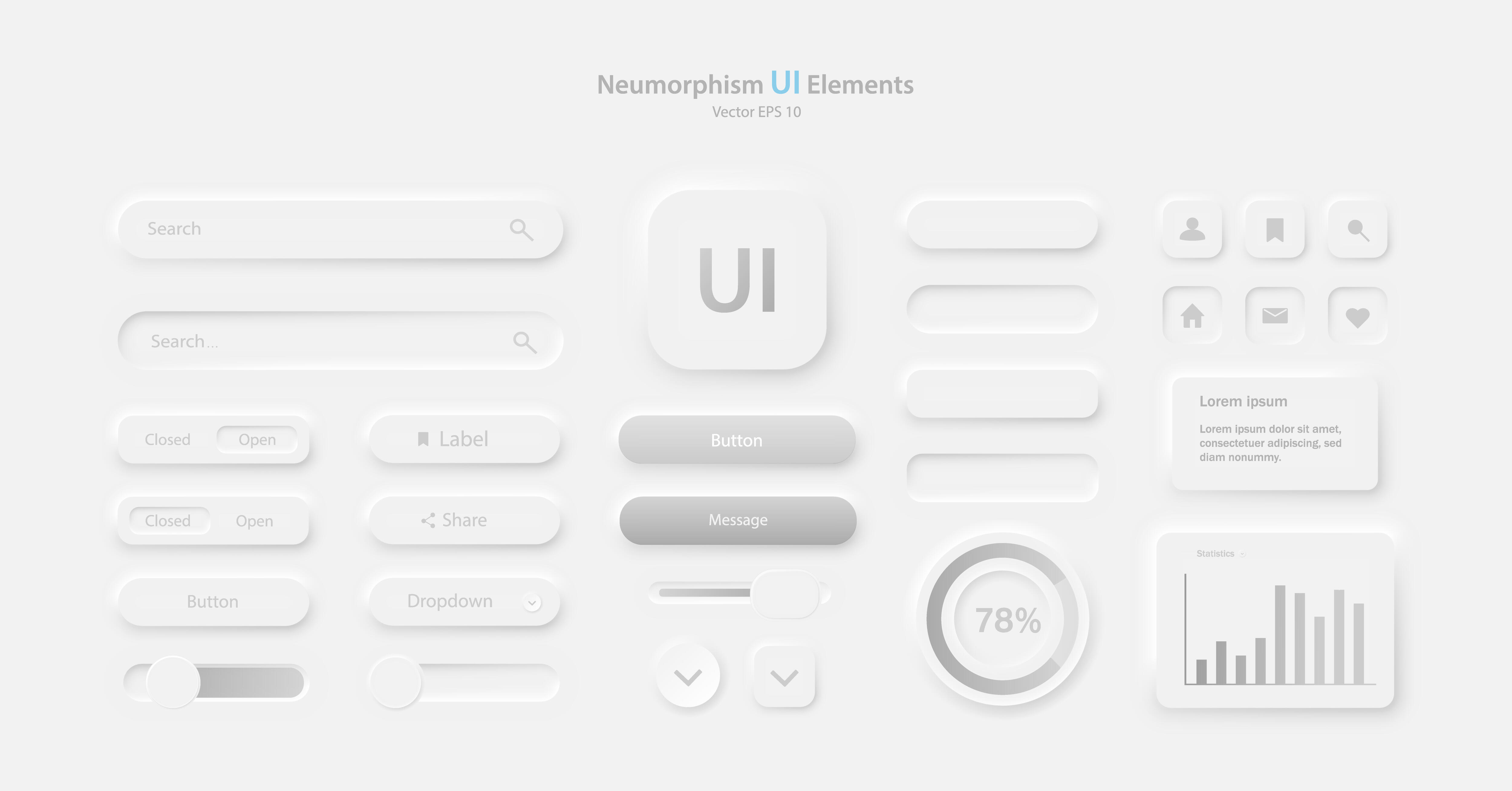 フラットデザインの流行から数年を経て、2019年頃から注目を集めたのがニューモーフィズム(neumorphism)です。
